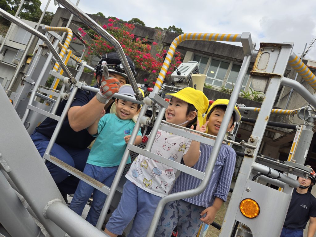 今回は特別にハシゴ消防車に乗せてもらえました!